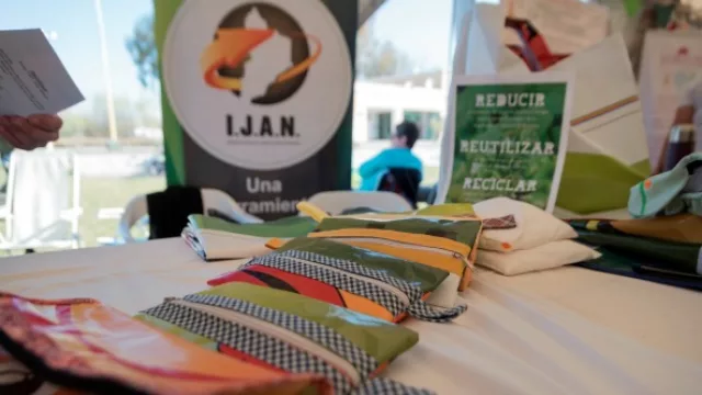 Se presentaron primero el “reciclado de lonas publicitarias”, que es un programa que busca evitar que las grandes superficies de vinilo se conviertan en desecho y transformarlas en elementos útiles. Allí se exhibieron bolsos, cartucheras, ficheros, etc., destinados para diferentes escuelas y otros elementos de promoción, que para su manufactura ocuparon mano de obra de un taller municipal de costura de la localidad de San Patricio del Chañar.
