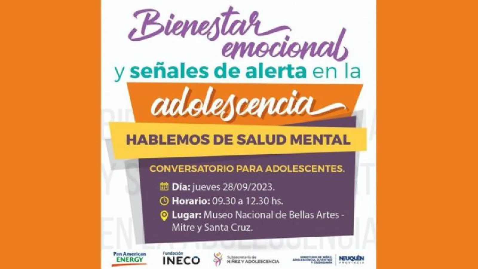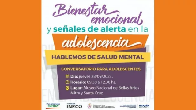 Comenzará con un primer encuentro desde las 9.30 hs, destinado a estudiantes neuquinos sobre “Bienestar emocional y señales de alerta en la adolescencia”; mientras que a las 16 hs la charla será abierta a la comunidad y se abordará la temática “El cerebro adolescente y su bienestar emocional. Cómo mejorar la interacción y el apoyo de los adultos”.