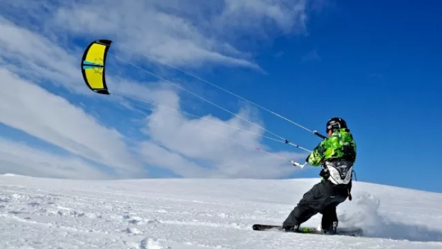 El snowkite es un deporte innovador que fusiona el kiteboarding con el snowboard o el ski. La fuerza del viento permite a los practicantes hacer cosas jamás pensadas en la montaña, como subir cuesta arriba, animarse a saltos increíbles, recorrer grandes distancias en excursiones y flotar sobre la nieve son algunas de las emociones.