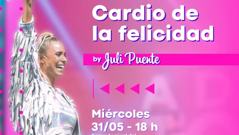 El próximo miércoles 31 de mayo, Juli Puente estará en Neuquén Capital para llevar su "Cardio de la Felicidad" a todos los interesados en participar. El evento se realizará a las 18 horas en el segundo nivel de estacionamiento del Alto Comahue Shopping. Para reservar un lugar, se requiere descargar la aplicación de ¡appa! y seguir unos simples pasos: seleccionar "Alto Comahue Shopping" como favorito, ir a la sección de eventos, elegir el evento "Cardio de la felicidad" y realizar la reserva a través del enlace proporcionado.