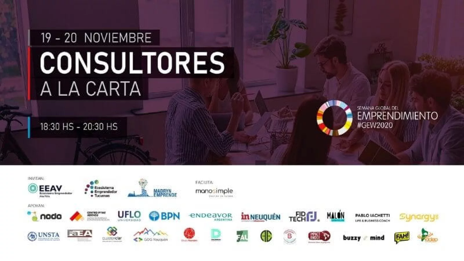 En el marco de la Semana Global del Emprendimiento, #GEW2020, se realizará este jueves 19 y viernes 20 de noviembre un evento donde los emprendedores y las emprendedoras podrán dialogar con especialistas en temas centrales para cualquier negocio.
