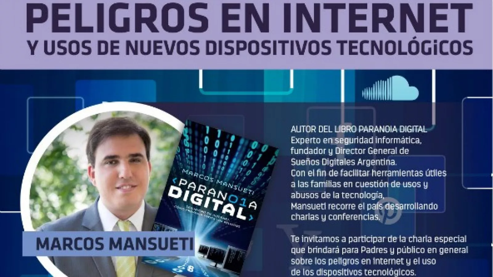 Cabe destacar que el autor de “Paranoia Digital” es un experto en seguridad informática, fundador y Director General de Sueños Digitales Argentina. Con el fin de brindar herramientas útiles a las familias en cuestión de usos y abusos de la tecnología, Mansueti recorre el país desarrollando charlas y conferencias.