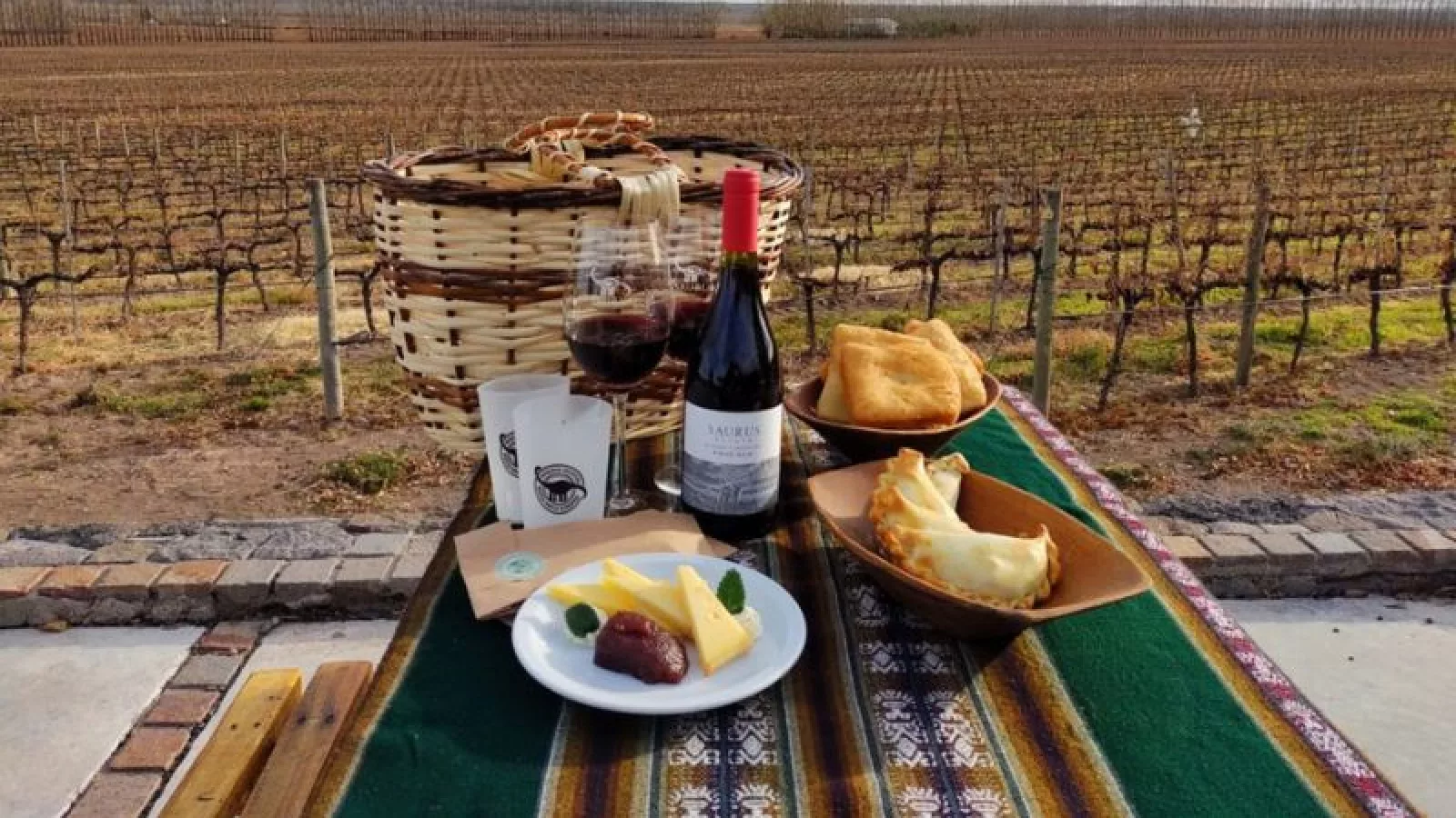 Picnic Saurus tiene opción invernal. Desde la bodega se propone almorzar al aire libre y disfrutar en pareja, en familia o con amigos de la vista a los viñedos. Para esta propuesta, se armo una canasta, para 2 y 4 personas, con todo lo que necesitas para deleitarte con panes, conservas y más opciones elaboradas por el chef Ezequiel González.