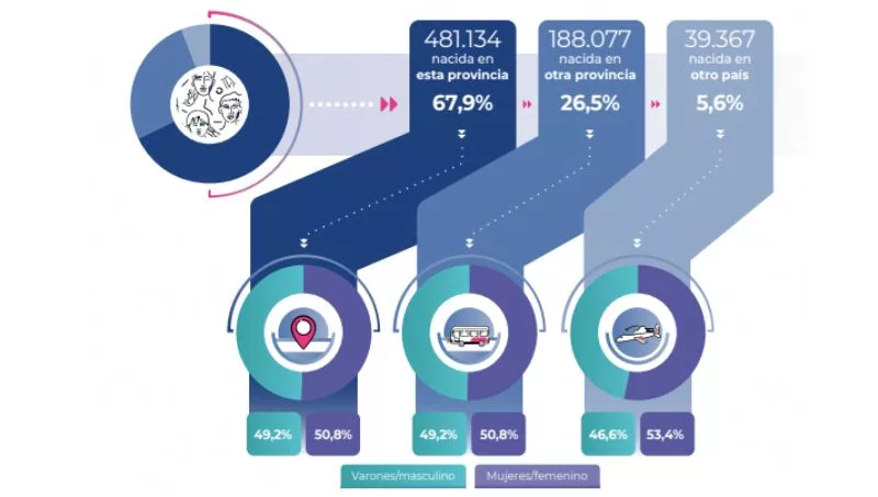 En Córdoba, el 14% de los censados nacidos en el país no nacieron en el ámbito de la provincia.