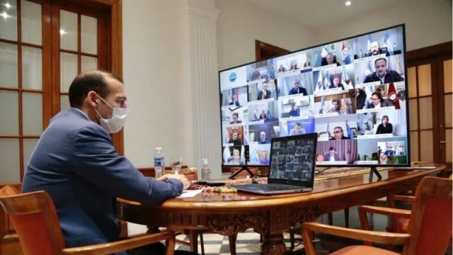 El presidente Fernández inició la reunión virtual junto al ministro del Interior, Eduardo de Pedro, desde la Residencia de Olivos, donde realizó junto a los gobernadores de las provincias y el jefe de gobierno porteño, un seguimiento de la situación frente al COVID-19.