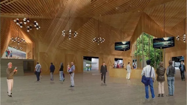 El edificio a construir recrea la imagen de una garza blanca del río Limay que se posa y anida en el Paseo de la Costa. Tendrá una superficie cubierta de 3.223,15 metros cuadrados y 537,29 metros cuadrados de superficie semicubierta, más un área exterior de 5.134,17 metros cuadrados. El diseño es innovador y vanguardista, con un desarrollo tecnológico y pautas de sustentabilidad que cumplirán con estándares internacionales.