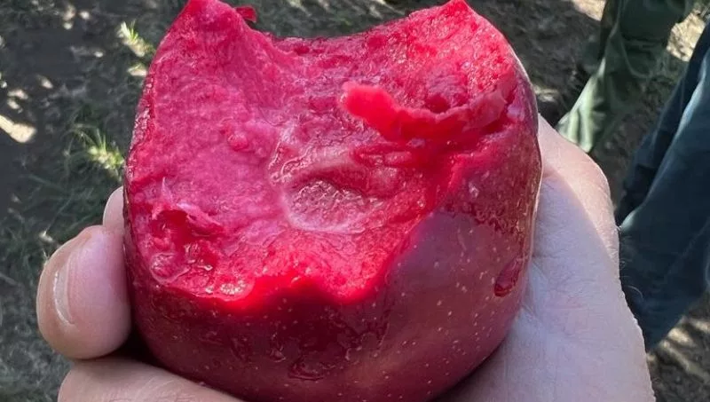 Manzana de pulpa roja, la (nueva) apuesta de Moño Azul (un producto distinto y exótico)