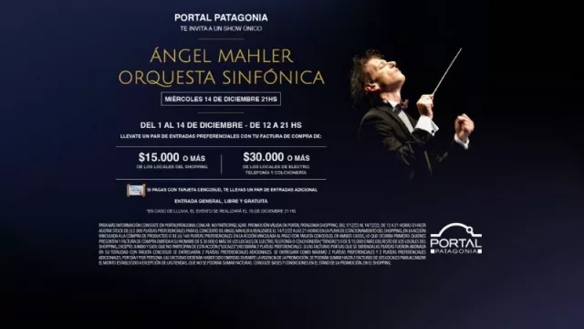 El próximo miércoles 14 de diciembre a las 21:00hs en el estacionamiento del Shopping Portal Patagonia vibrará al ritmo de la Orquesta Sinfónica. El reconocido compositor argentino Ángel Mahler, en su rol de director de orquesta, estará presente junto a 26 músicos excepcionales que interpretarán las canciones de películas y musicales más memorables (tales como Misión Imposible, Rocky, Piratas del Caribe, Gladiador, entre otros), en un show en el que se espera que 1500 personas puedan estar sentadas disfrutando un gran momento en familia.