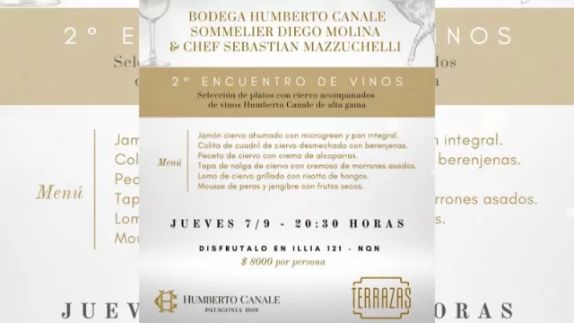 El evento tendrá lugar el próximo jueves 7 de septiembre a las 20:30 horas, en el elegante y exclusivo espacio Terrazas de Apart hotel Illia 121. Los invitados tendrán la oportunidad de deleitarse con un menú especialmente confeccionado para realzar las notas y aromas del ciervo, armonizadas a la perfección con los renombrados vinos de la Bodega Humberto Canale.
