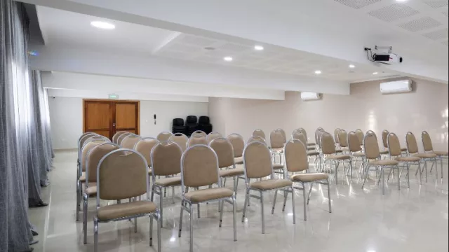 Estas salas están completamente equipadas con proyectores, pizarras, escritorios, equipos de sonido, pupitres, mesas y sillas. A esto se suma un servicio integral de catering que incluye desayuno, almuerzo y cena, ideal para jornadas intensas de trabajo o encuentros empresariales.