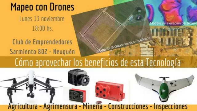 El próximo lunes 13 de noviembre en el Club de Emprendedores de Neuquén (Sarmiento 802- 18 hs) vuelven a reunirse y esta vez será para conocer los “Mapeos con Drones”, cómo aprovechar los beneficios de esta tecnología.