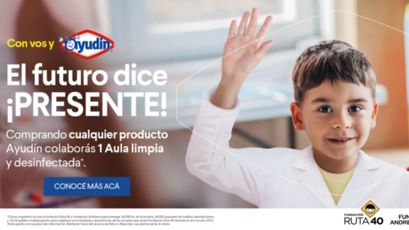 Ayudín, en alianza con Ruta 40, Fundación comprometida con la educación y las escuelas rurales, se unieron para modificar la realidad de las escuelas colaborando con la presencialidad de todos los alumnos porque un aula limpia y desinfectada ayuda a prevenir enfermedades y eso permite que más chicos y chicas puedan decir “presente”. Recordando también que cualquier persona puede colaborar con la compra de cualquier producto Ayudín. Fundación Andreani sigue colaborando con la logística para llegar con los productos Ayudín a cada una de las escuelas que asiste la Fundación Ruta 40.