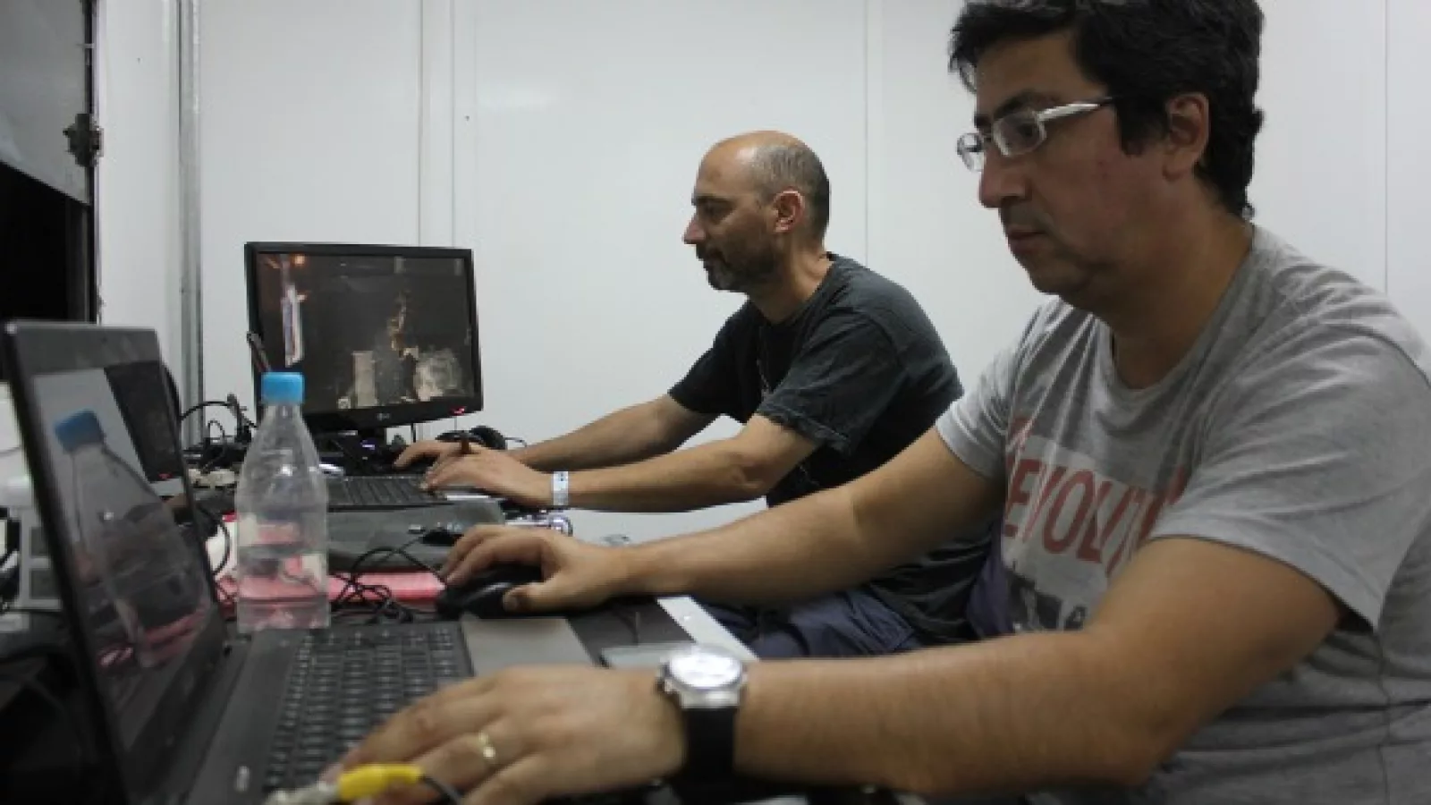 Más de ocho personas conformaron por momentos el staff técnico y de dirección general de Cuatro Cruz, más otras tres personas, distinguidas por sus tareas como conductores “en piso” (salidas en vivo desde el estudio montado detrás del Escenario Mayor) y una más que alternaba como “móvil” desde muy cerquita del público, donde el calor de la fiesta se reflejó en cada transmisión diaria.