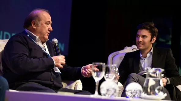 A media mañana fue el momento que les tocó subir al escenario, pero esta vez fue diferente, no llevaron a cabo su presentación individual como lo habían hecho anteriormente sus colegas empresarios. Como si estuviesen en el living de su casa, ambientado como tal, con tres sillones en el centro del escenario, tanto Sánchez como Viola, fueron entrevistados por sus hijos.