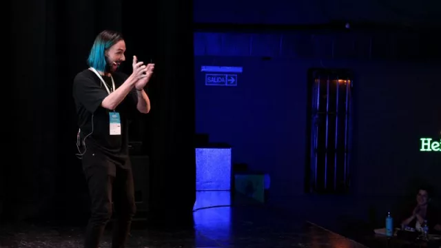 Su exposición se centró en contar su experiencia desde 0 a ser un Influencer profesional, desde trabajar en una empresa de bajos recursos a ser conocido como el chico de pelo azul de LinkedIn.