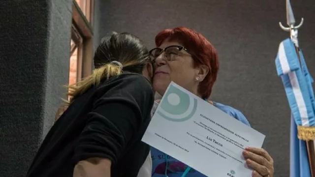 De la mano de Cristina Díaz, presidenta de Mujeres PyMES del Sur, recibía entre otros reconocimientos, el diploma al premio ganador que integraba un valor total de 11 mil pesos, incluida una vacante para participar del programa que brinda la Fundación Empretec –que ayuda al desarrollo del comportamiento del emprendedor-, gracias al Centro PyME-Adeneu y un voucher para utilizar en Clic gráfica integral.