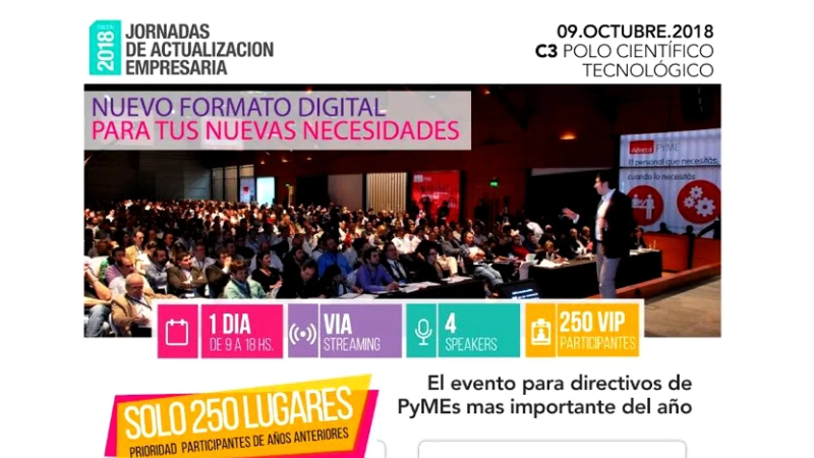 Este año hay otra apuesta desde las Jornadas de Actualización Empresaria 2018 y se concentra en una estrategia que será “digital y federal”, y para ello se definieron dos interesantes clasificaciones de público concurrente: Experiencia VIP y Acceso Streaming.