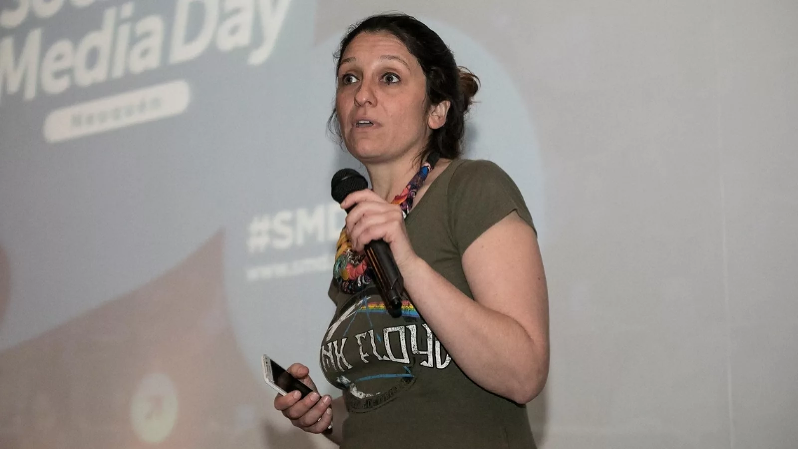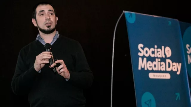 Pablo Salaburu, el tercero en exponer, relató cómo las redes sociales y las nuevas tecnologías de emisión cambiaron la manera de trabajar dentro de la redacción del noticiero. Ejemplificó que “hoy cerca del 15% del material que se emite en Telefé Neuquén proviene de las redes”, como una parte de la transformación que mencionó anteriormente. Incluso intentaron educar al público a “filmar en el formato horizontal”, situación que no prosperó y resultó que adaptaron “la nueva escenografía del canal para contar con pantallas verticales”.
