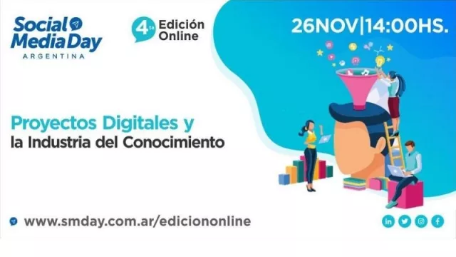 El jueves 26 de noviembre de 14 a 19 se realizará la 4° Edición del Social Media Day cuyo eje temático será “Proyectos Digitales y la Industria del Conocimiento”. En el encuentro federal y online se debatirá acerca de las transformaciones en la comunicación digital, uso de redes sociales y las nuevas estrategias de contenidos, digital commerce, publicidad, marketing y nuevos negocios. Podes inscribirte ingresando en el siguiente link.