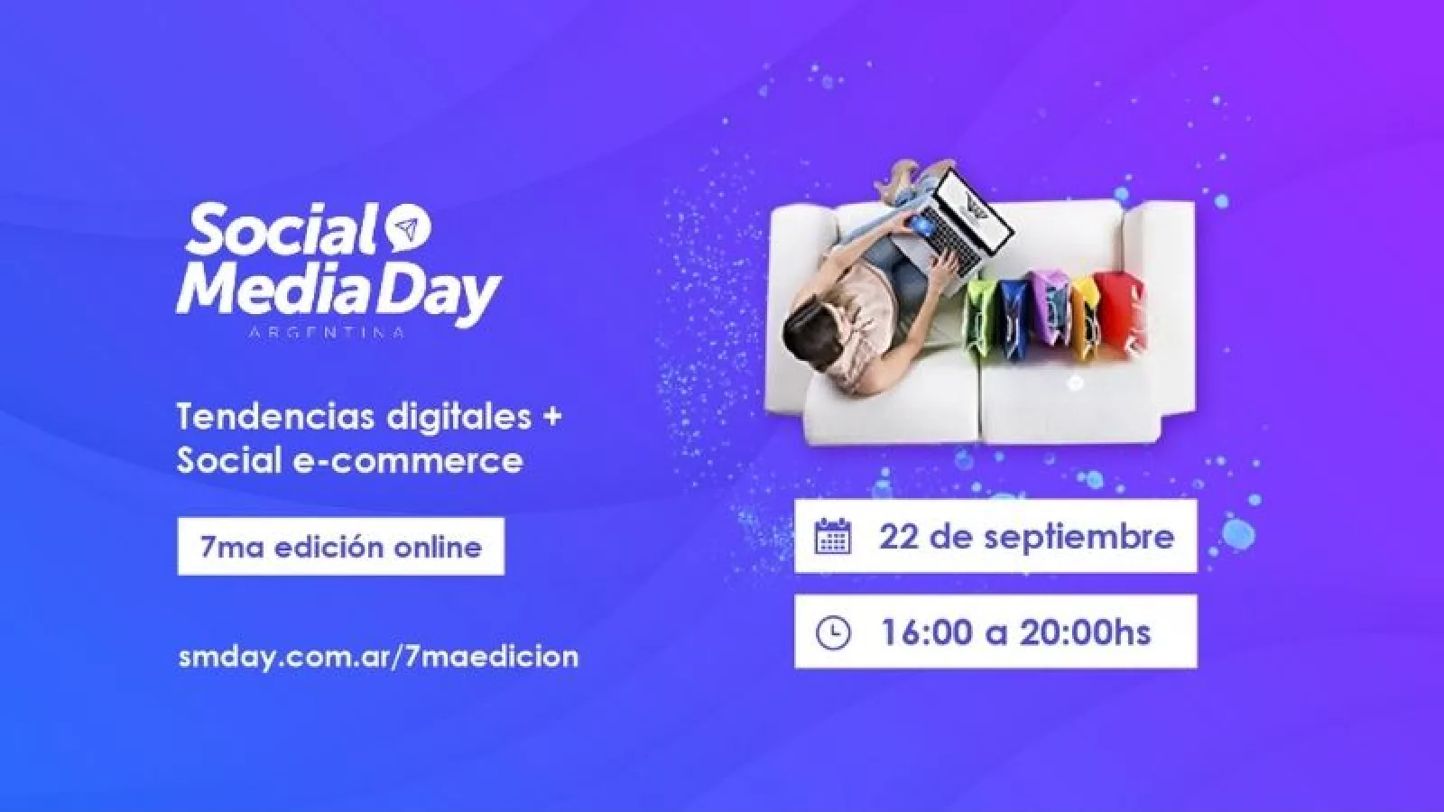 ¡Ya llega el evento online más importante! Este miércoles 22 de 16 a 20 se realizará la 7° Edición Online del Social Media Day sobre Tendencias Digitales + Social e-Commerce. Este encuentro online y federal propone debatir con espacios de intercambio y charlas de destacados oradores acerca de las transformaciones en la comunicación digital con especial foco en Social + e commerce.