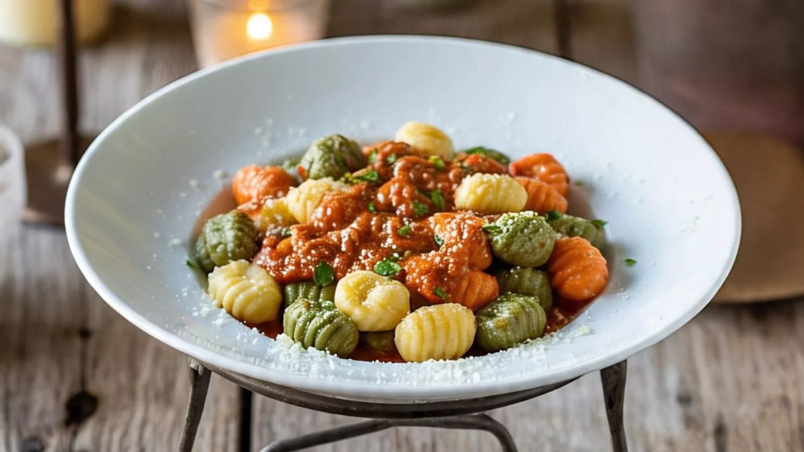 Como entrada, se ofrecerán ñoquis tricolor con salsa mediterránea, una combinación que celebra los sabores frescos y coloridos del sur de Italia. Este plato será acompañado por un Semillón Sauvignon Blanc de Humberto Canale, una bodega emblemática de la región que aporta frescura y acidez a la propuesta.