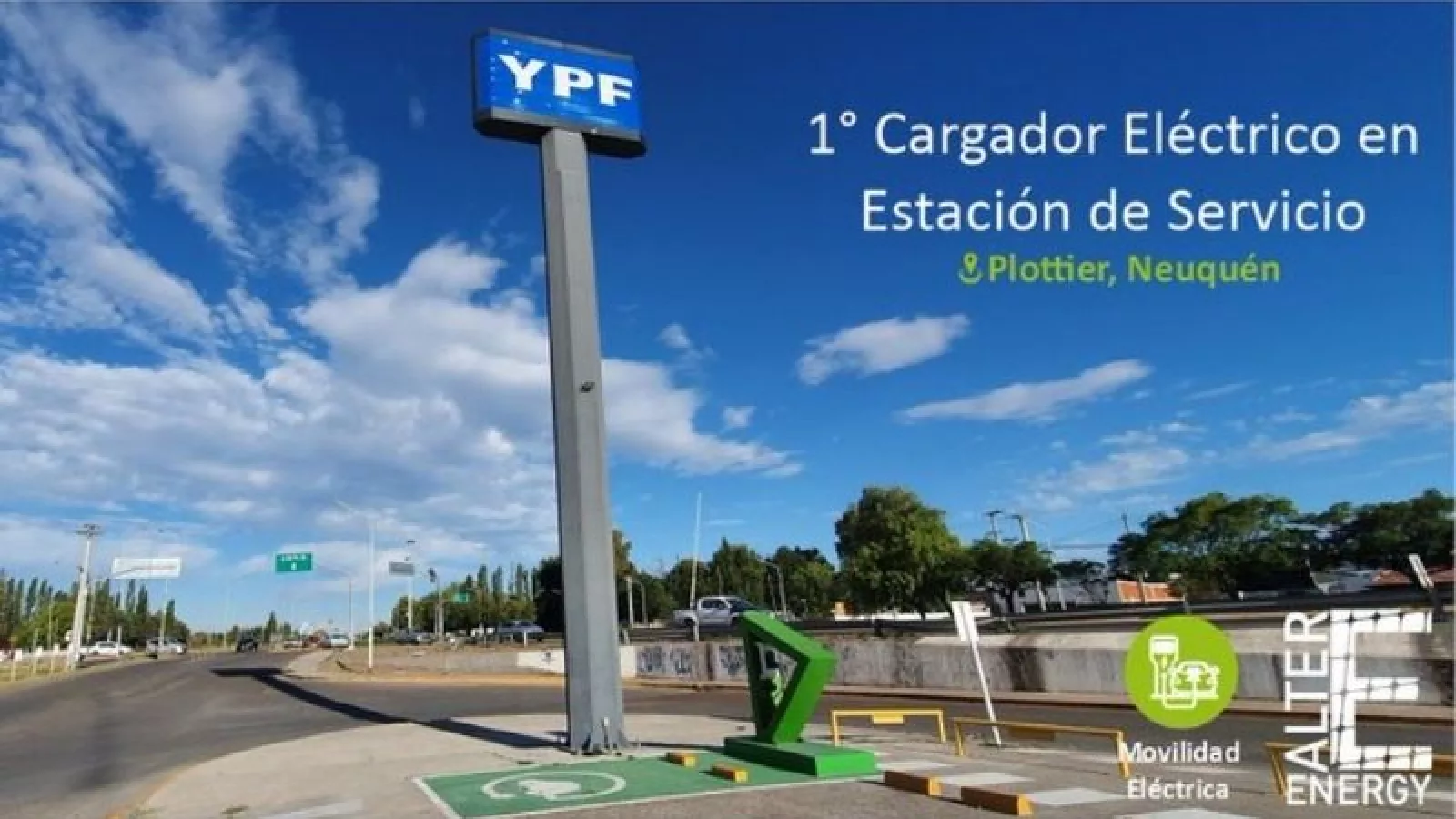 La estación cuenta con un cargador Eléctrico de la marca #ABB modelo EVLunic de 22 kw de Potencia de corriente alterna, instalado en la ciudad de Plottier de la Provincia de Neuquén.