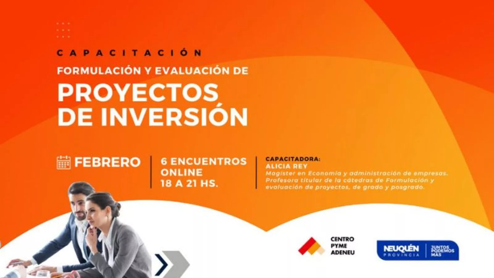 El Centro PyME-Adeneu, dependiente del ministerio de Producción e Industria, convoca a profesionales de distintas áreas a participar de una capacitación, de carácter gratuito, en formulación y evaluación de proyectos de inversión.