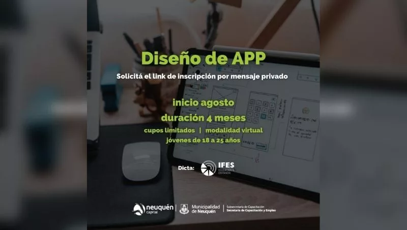 La subsecretaría de Capacitación abrió las preinscripciones para el curso virtual y gratuito de Diseño de App que comenzará en agosto. Esta capacitación se dictará en conjunto con la institución IFES SRL y está dirigida a jóvenes de 18 a 25 años.