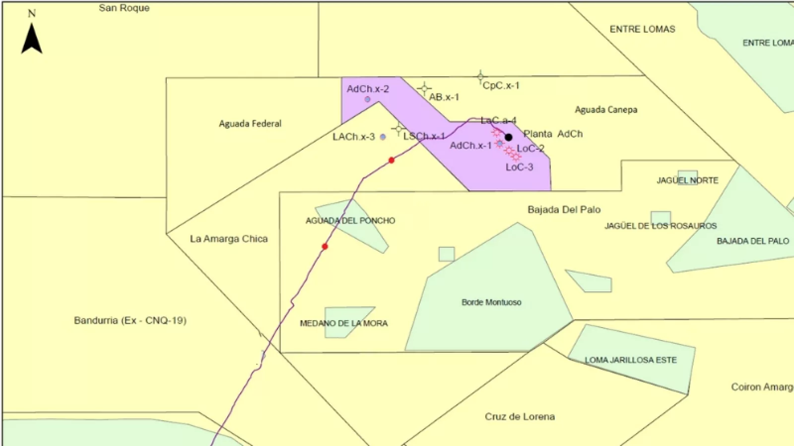 El Lote Aguada del Chañar está rodeado de áreas petroleras para las cuales se encuentran en ejecución o se han anunciado grandes compromisos de inversión. El área contiene dos yacimientos: Loma Colorada (Gas) y Bosque Chañar (Petróleo). Se ha documentado la existencia de hidrocarburos en cuatro formaciones, tres de las cuales contienen recursos convencionales (Lotena, Sierras Blancas y Vaca Muerta naturalmente fisurado), mientras la cuarta (Punta Rosada) es de características “tight” (no convencional). A la fecha se han perforado 9 pozos.