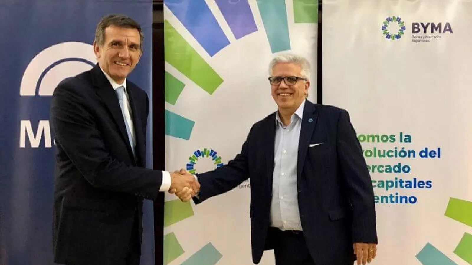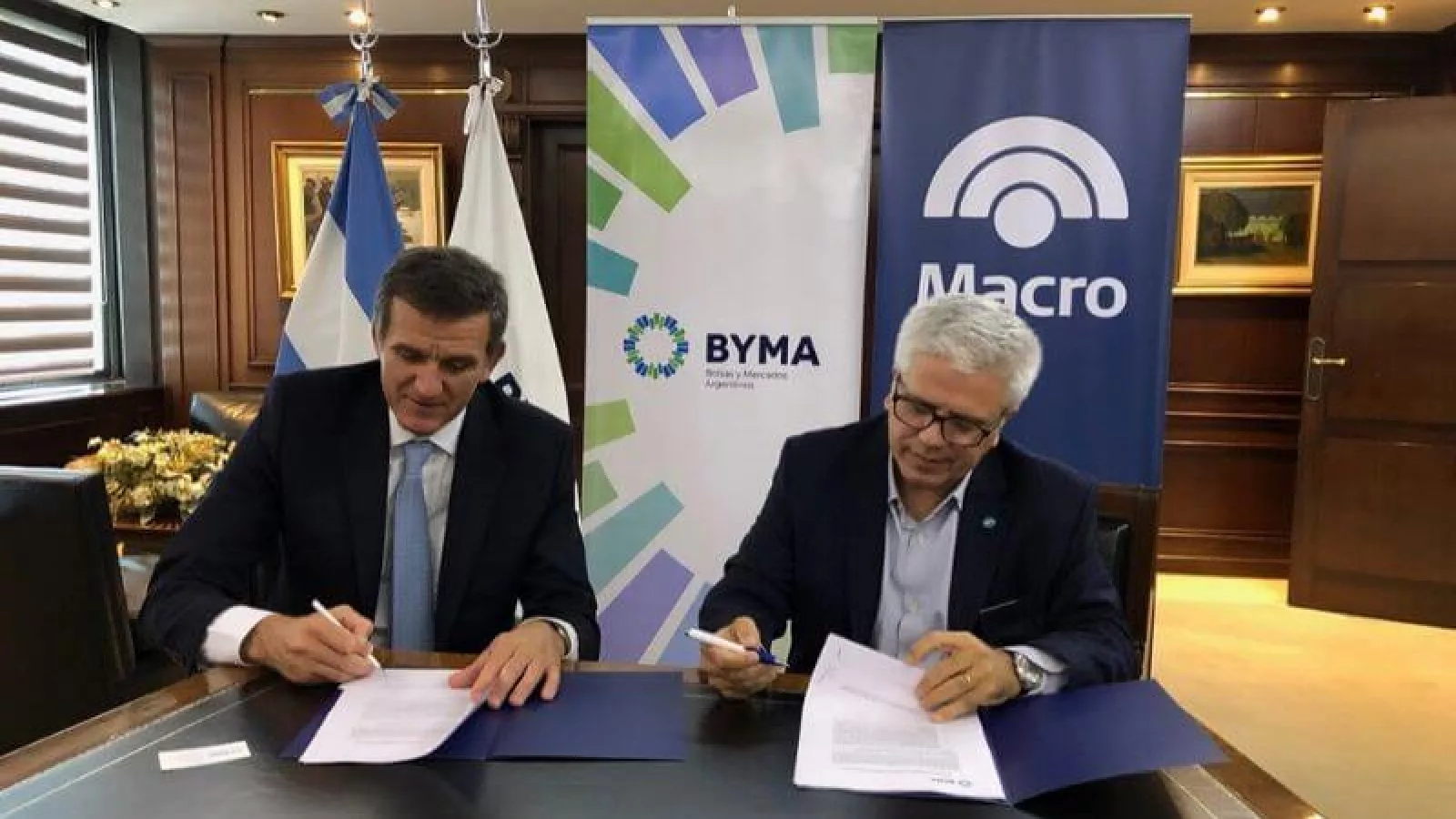 Gustavo Manríquez, gerente general de Banco Macro, Ernesto Allaria, presidente de BYMA y Milagros Medrano, gerente de relaciones institucionales y atención al cliente de Banco Macro, fueron los principales protagonistas del acto de adhesión.