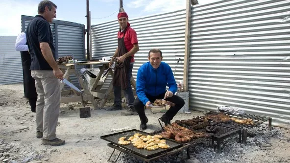 El gobernador, que estuvo acompañado por el presidente de la entidad bancaria, Marcos Koopman, conversó con los obreros y los responsables de la dirección técnica de las obras y luego compartió con ellos un almuerzo.