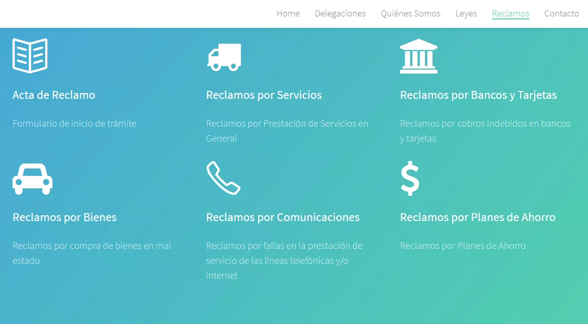 El sitio ofrece información para realizar reclamos (formulario de contacto) ante hechos como errores en facturación, publicidad engañosa, incumplimiento de ofertas o de garantías, entre otras irregularidades posibles. La dependencia pública tiene la misión de velar por la protección de los derechos de los consumidores en todo Neuquén, poniendo de relieve que la política de Defensa del Consumidor es parte de un proyecto de país inclusivo.