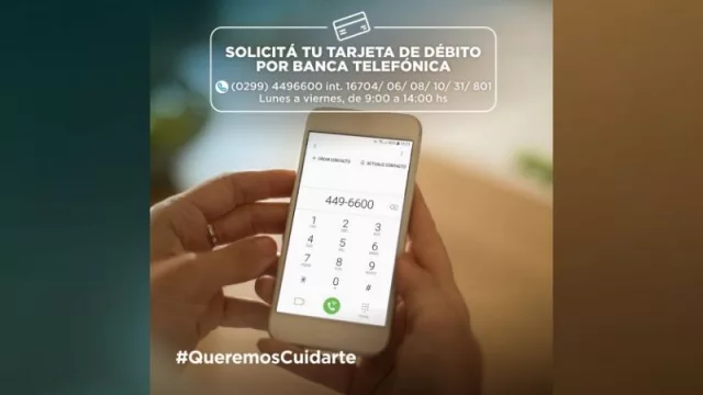 Mientras que las solicitudes de tarjetas de débito deberán canalizarse llamando al (0299) 4496600, internos 16704/706/708/710/731/801 de 9 a 14, salvo en el caso de localidades del interior como Zapala, Cutral Co, Chos Malal, San Martín de los Andes, Villa La Angostura y Rincón de los Sauces, en donde se podrán realizar dichas solicitudes en las sucursales que abren sus puertas.