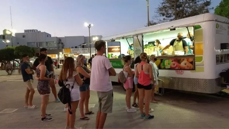 “Estuvimos promocionando las peras y manzanas de Río Negro, y hemos tenido un buen resultado, la gente se acerca contenta a consumir jugos naturales, que son la novedad en el carro. También tenemos dulces y fruta fresca para llevarse a la playa y que las personas se vayan acostumbrando o consuman cada vez más fruta fresca”, comentó Sebastián Hernández, el presidente de la Federación de Productores de Fruta de Río Negro y Neuquén.