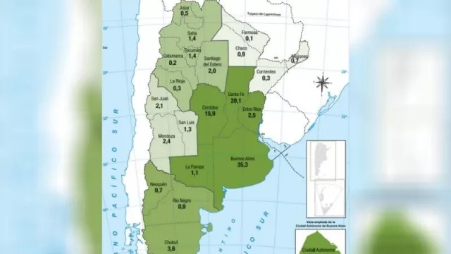 Mirá este mapa. Esta es la base de cómo aportan las distintas economías provinciales y regionales al ingreso de dólares al país, cuello de botella histórico que inician las sucesivas crisis.
