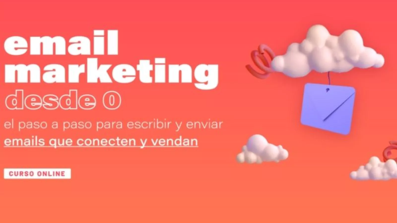 En el curso “Email Marketing desde 0: el paso a paso para escribir y enviar emails que conecten y vendan” encontrarás 23 lecciones grabadas para ver a tu ritmo, accederás a 4 BONUS, entre ellos una masterclass con una experta invitada para continuar profundizando sobre cómo armar una secuencia de correos que realmente genere resultados para tu emprendimiento.