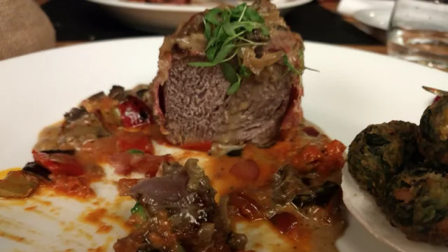 Como platos principales, el menú proponía lomo en prosciutto descansando en ciambotta y malfatis de espinacas al funghi porcini. También otros eligieron los conchiglionis rellenos de ricota, espinaca, hongos y panceta, con salsa de queso brie.