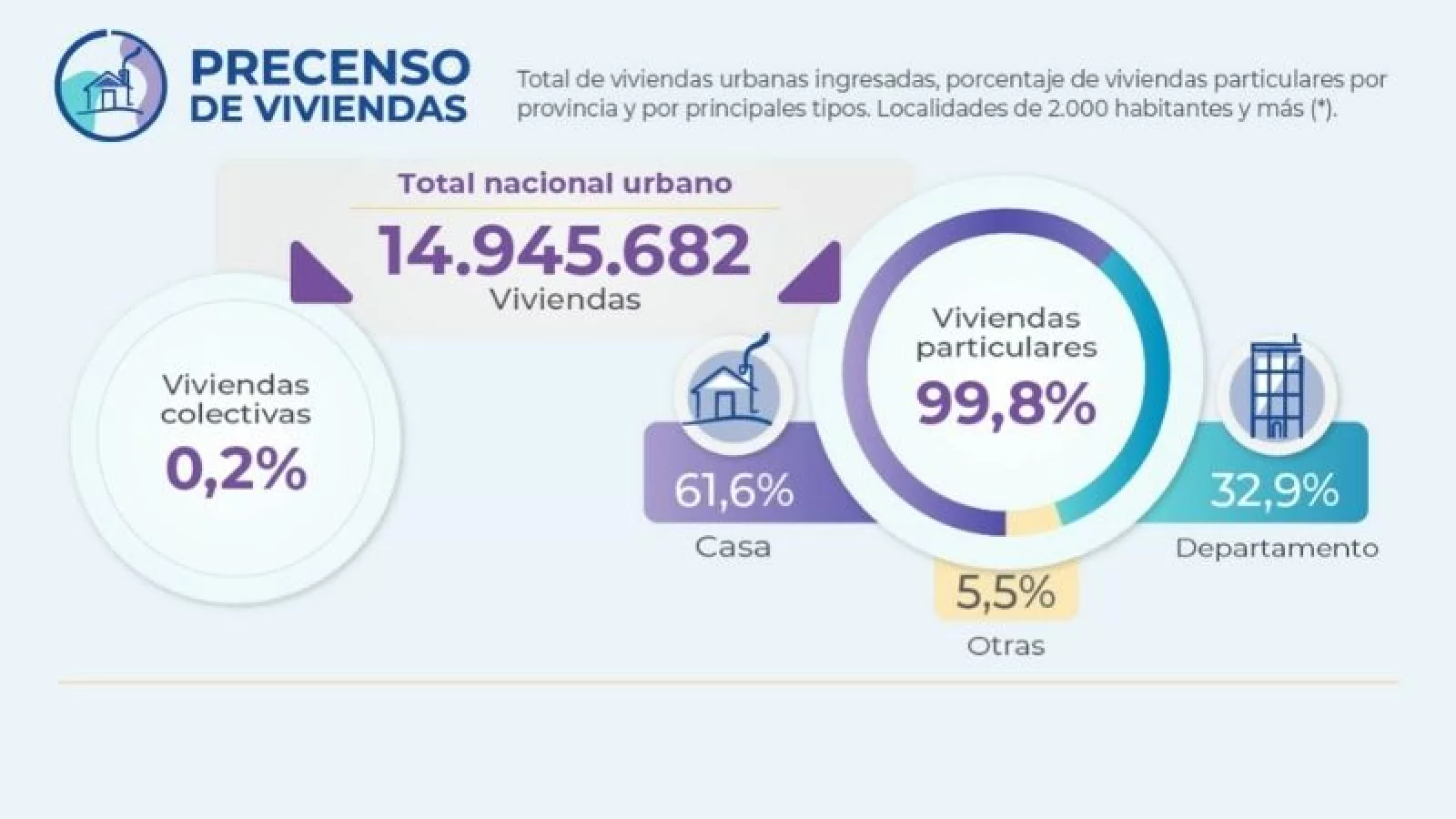 - En el total de las localidades relevadas se detectaron 14.945.682 viviendas