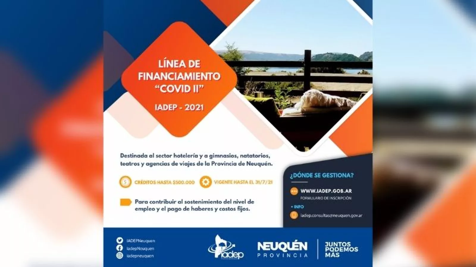 A raíz de ello, el Iadep como agente financiero pondrá a disposición la “Línea de financiamiento Covid II”, destinada a personas humanas o jurídicas, que se encuentren relacionadas al sector hotelero, a gimnasios, natatorios, teatros y agencias de viajes de la Provincia de Neuquén y que requieren capital para el pago de haberes y de los costos fijos provenientes de la actividad.