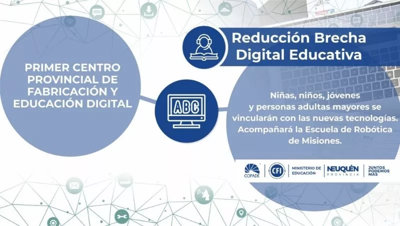 La creación de este centro educativo el es uno de los objetivos trazados en el Programa de Reducción de la Brecha Digital Educativa en la provincia, que a través de la asistencia técnica y financiera del Consejo Federal de Inversiones, lleva adelante la ejecución de distintas iniciativas para garantizar la inclusión digital en la provincia del Neuquén.