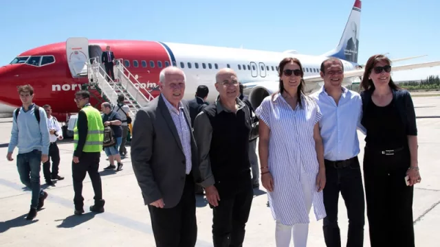 El vuelo arribó a la aeroestación neuquina directamente desde el Aeroparque Jorge Newbery puntualmente a las 14. En él llegaron los directivos de la firma, Ole Christian Melhus, CEO de Norwegian Air Argentina y Matías Maciel, director de Comunicaciones y Asuntos Públicos. En el “Presidente Perón” fueron recibidos por el gobernador Omar Gutiérrez, la ministra de Turismo, Marisa Focarazzo, el presidente de la Agencia para la Promoción y Desarrollo de Inversiones del Neuquén SE (ADI-NQN), José Brillo, el secretario general de Gobierno y Servicios Públicos, Leonel Dacharry y el administrador de Aeropuertos Neuquén SA, Sergio Sevenants y demás representantes de la empresa.