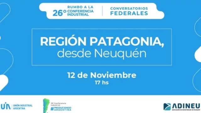Se pone en marcha hoy jueves 12 a las 17 el Conversatorio Federal Región Patagonia. Desde Neuquén, los sectores industriales que producen alimentos, indumentaria, tecnología y energía continuarán debatiendo la agenda integral que conforma “Rumbo a la 26º Conferencia Industrial”. Seguilo en VIVO desde acá.