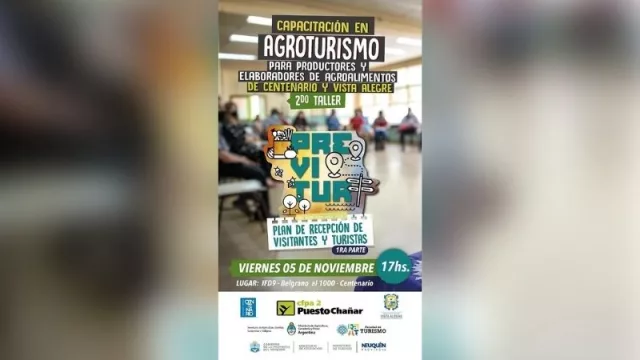 Esta capacitación se realiza en el marco del proyecto "Circuito Turístico de Agroalimentos Centenario - Vista Alegre" y está destinada principalmente a productores y elaboradores de agroalimentos de Centenario y Vista Alegre.