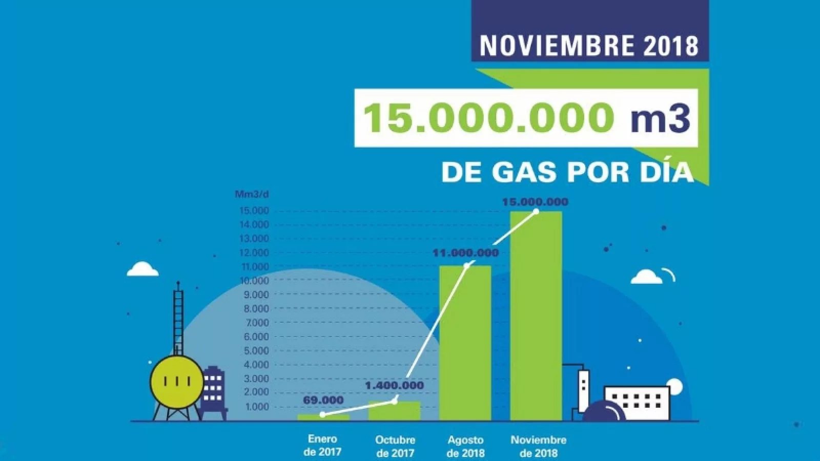 Fortín de Piedra sigue liderando la producción en la formación Vaca Muerta, no solo la noticia del aumento es relevante, esos 15 millones de metros cúbicos por día equivalen al consumo de gas de casi 2.300.000 hogares. Si bien se cumplió en noviembre de este 2018, originalmente tenía como objetivo alcanzarlos a principios de 2019. La compañía sigue posicionándose bien arriba en cuanto a los resultados positivos de sus pozos en Vaca Muerta.