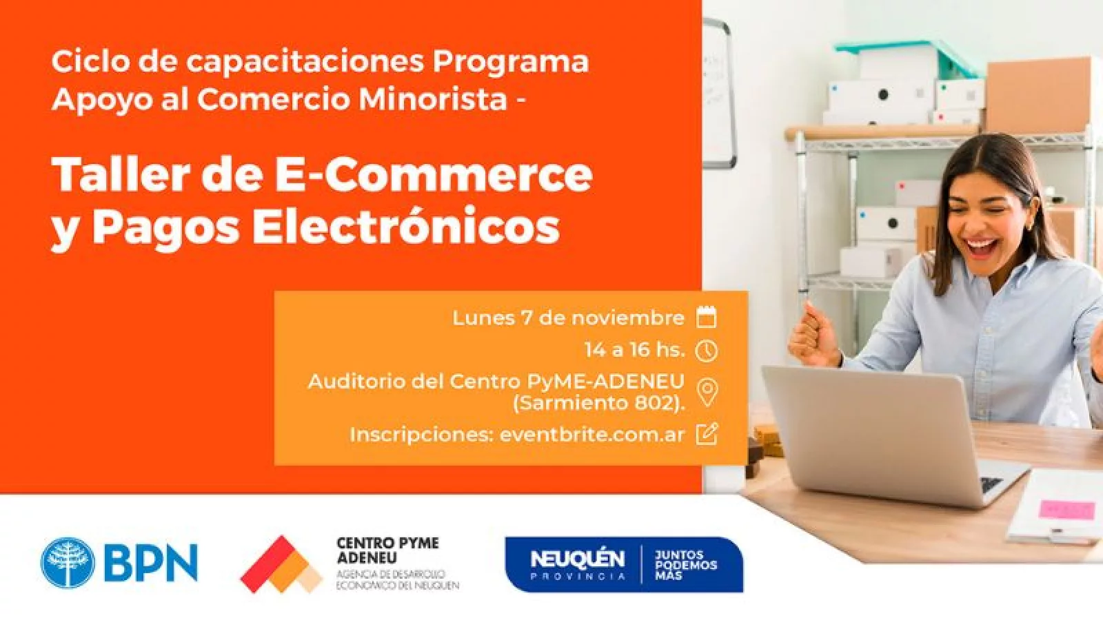 Como parte de sus acciones, el Programa de Apoyo al Comercio Minorista que implementa el Centro PyME-ADENEU (ministerio de Producción e Industria) brindará un taller sobre e-commerce y pagos electrónicos. La capacitación se realiza en alianza con el Banco Provincia del Neuquén (BPN).