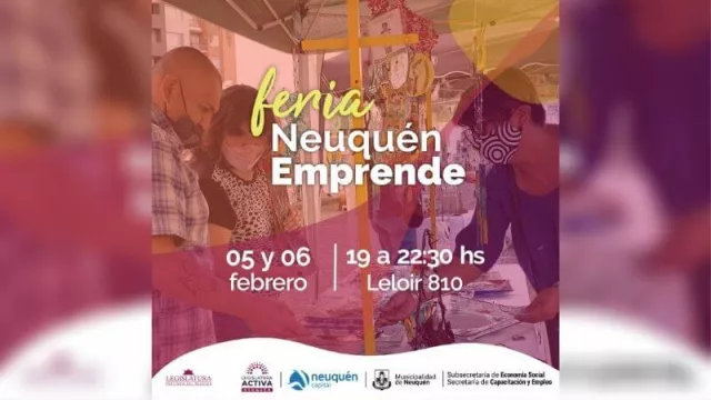 La Legislatura de Neuquén será nuevamente sede de la “Feria Neuquén Emprende” que se desarrollará este viernes 5 y sábado 6 de febrero de 19 a 22.30 en el estacionamiento externo del edificio, Leloir 810.