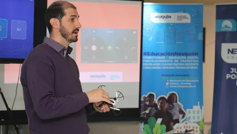 La jornada se realizó en el “Club del Emprendedor” en el marco del proyecto "La robótica va a tu escuela", formulado por la Secretaría del Copade junto con el Ministerio de Educación. El objetivo es proveerles a las 25 escuelas técnicas y agropecuarias de la provincia kits de robótica y drones educativos y, capacitar a los docentes en su utilización en las aulas.