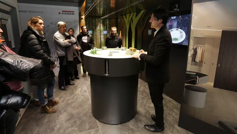 El camión de EGGER tiene un diseño interior completamente nuevo que pone de relieve todo su portafolio, algunas novedades son una superficie de realidad aumentada para compartir con los visitantes el proceso productivo y modelo de gestión sostenible que la compañía lleva a cabo en todo el mundo. Además, los visitantes podrán probar el sistema VDS de visualización de ambientes.
