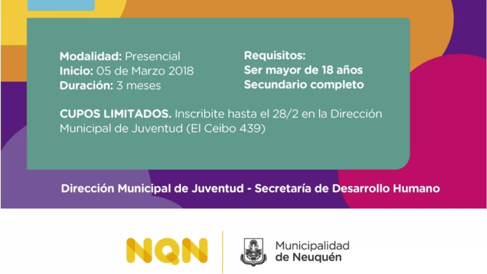 Los jóvenes interesados y que cuenten con sus estudios secundarios finalizados podrán inscribirse en El Ceibo 439, de lunes a viernes de 7 a 14 horas. Deberán concurrir con fotocopia de su DNI, y un certificado de finalización de estudios secundarios.