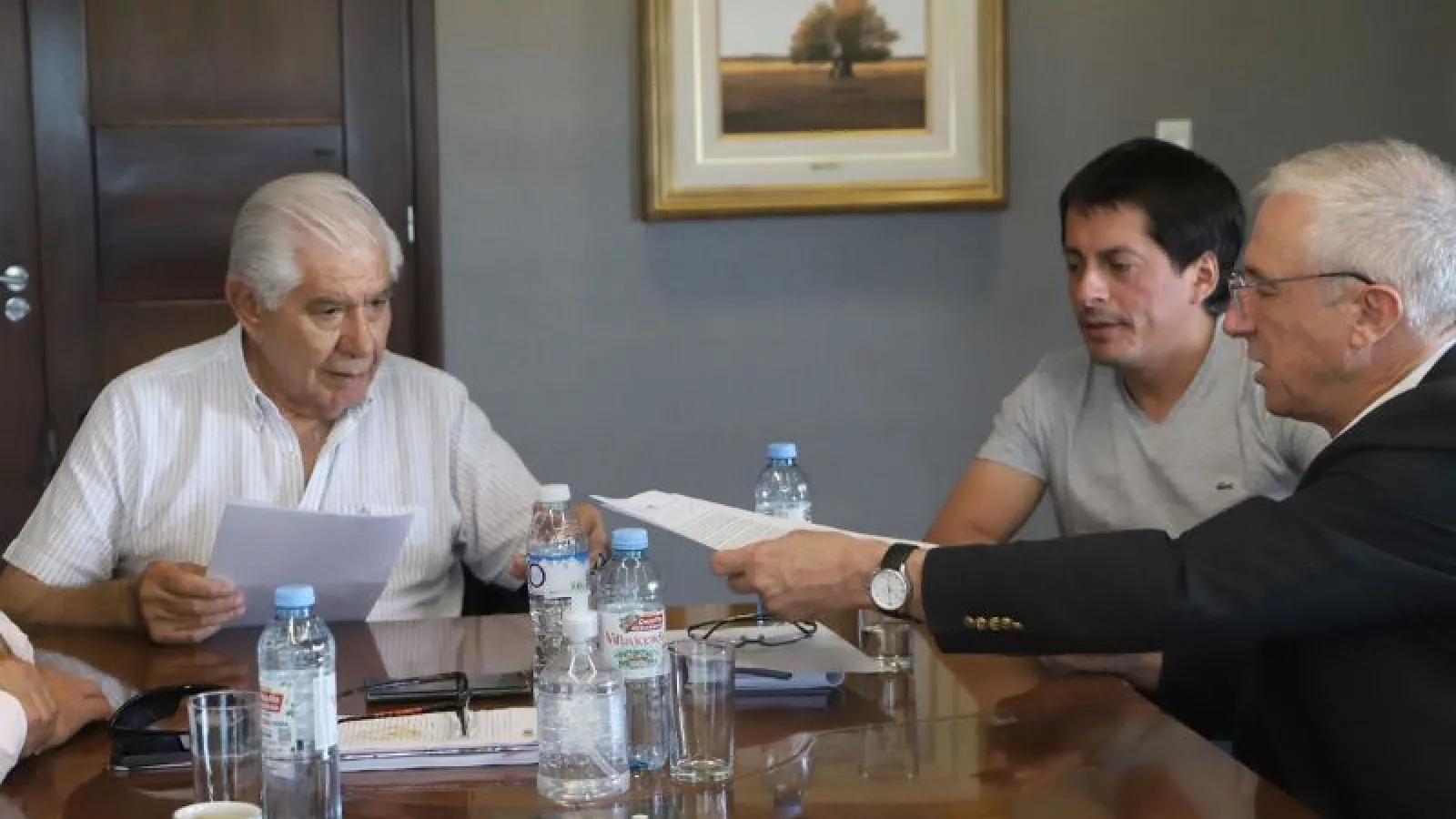 En la firma del traspaso estuvieron presentes el Presidente de Meopp, Guillermo Pereyra, el Secretario General Adjunto del sindicato de Petroleros Privados, Ernesto Inal, y el intendente de El Chañar, Leandro Bertoya.